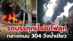 ระทึก! รถบรรทุกน้ำมันไฟลุกกลางถนน 304 วังน้ำเขียว