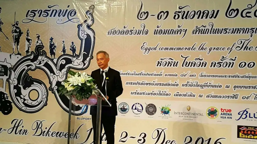 บ่ายวันนี้ (30 พ.ย. 59) ที่ศูนย์การค้าบลูพอร์ต หัวหิน รีสอร์ทแอนด์มอลล์ อำเภอหัวหิน จังหวัดประจวบคีรีขันธ์ นายสุวัจน์ ลิปตพัลลภ อดีตรองนายกรัฐมนตรี เป็นประธานแถลงข่าวการจัดงาน “หัวหิน ไบค์วีค ครั้งที่ 11”