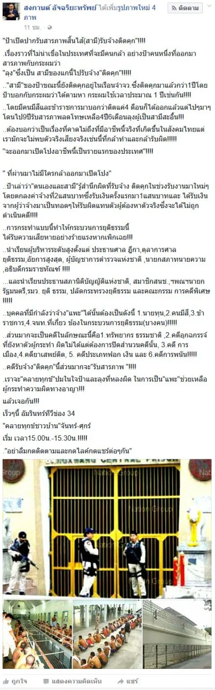 เรื่องราวที่ไม่น่าเขื่อในประเทศที่จะมีคนกล้า อย่างป้าคนหนึ่งที่ออกมาสารภาพกับกระผมว่า "ลุง"ซึ่งเป็น สามีของแกนี้ไปรับจ้าง"ติดคุก"!!!!!