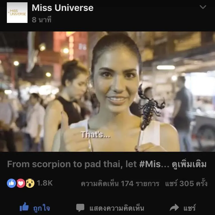 กองมีสยูนิเวิร์สครั้งที่65โพสคลิปน้ำตาลกินแมงป่อง!