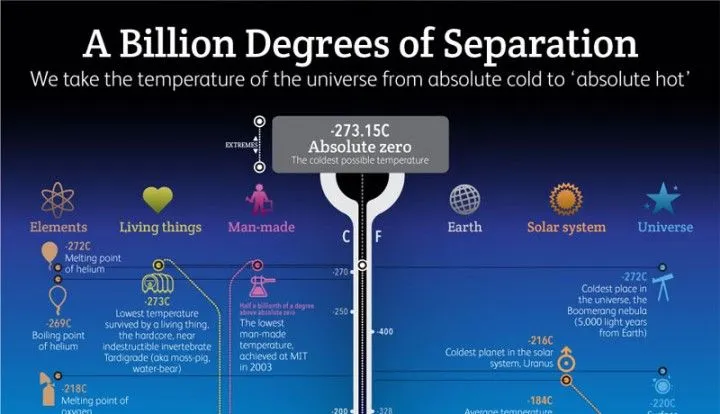 อะไรจะเกิดขึ้นถ้าเราสามารถลดอุณหภูมิลงไปได้ถึงศูนย์องศาสัมบูรณ์ (-273.15°C) ซึ่งเป็นอุณหภูมิที่ต่ำที่สุดในจักรวาล? คำตอบก็คือที่อุณหภูมินั้นจะไม่มีอะไรคงอยู่ได้ เพราะอนุภาคมูลฐานอย่างอิเล็กตรอนจะหยุดสั่น และทำให้อะตอมของสิ่งต่างๆไม่สามารถคงรูปอยู่ได้และสลายไป แต่การที่จะได้มาซึ่งอุณหภูมิดังกล่าวนั้นย่อมไม่ใช่เรื่องง่าย เนื่องจากในการลดอุณหภูมิของสิ่งของให้ลงไปได้ต่ำขนาดนั้นย่อมไม่อาจทำได้ด้วยวิธีการแบบปกติอย่างการใช้ตู้เย็น