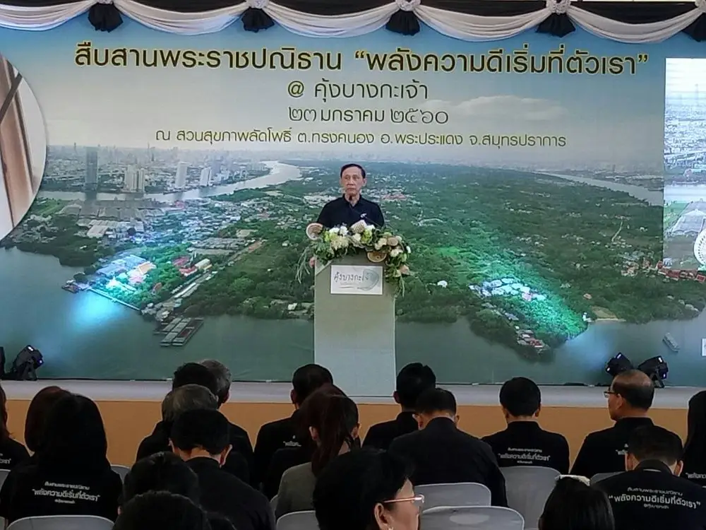 ที่ผ่านมา การพัฒนาโครงการคุ้งบางกะเจ้าเฉลิมพระเกียรติฯ ได้นำแนวทางการพัฒนาตามแนวพระราชดำริวิถีชีวิตพอเพียงเพื่อการพัฒนาที่ยั่งยืน ของพระบาทสมเด็จพระปรมินทรมหาภูมิพลอดุลยเดช มาเป็นแนวทางในการพัฒนาโครงการฯ มาโดยตลอด ปัจจุบันมีความคืบหน้าอย่างต่อเนื่อง ทั้งในด้านการพัฒนาพื้นที่สีเขียว การพัฒนาคุณภาพชีวิตชุมชน และการส่งเสริมวิถีชีวิตชุมชน และในวันนี้จึงเป็นการรวมพลังกันอีกครั้ง เพื่อสืบสานพระราชปณิธานของพระบาทสมเด็จพระปรมินทรมหาภูมิพลอดุลยเดช ในการร่วมปฏิญาณตนผ่านการทำความดีเริ่มที่ตัวเรา และน้อมนำแนวพระราชดำริของพระองค์ท่านมาเป็นพลังในการทำงาน และการใช้ชีวิต ด้วยสำนึกในพระมหากรุณาธิคุณหาที่สุดมิได้