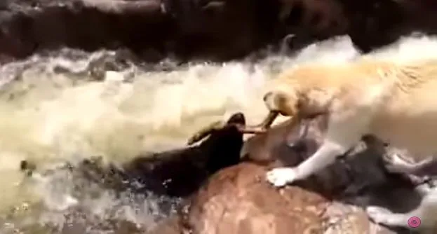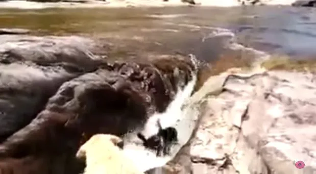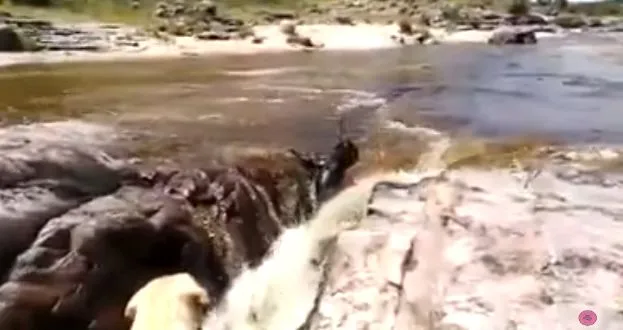 แชร์กระหน่ำ!! เผยในเห็นชัดชัด! วินาที "หมาช่วยเพื่อนหมา" ที่กำลังไหลไปกับน้ำตก! (มีคลิป)