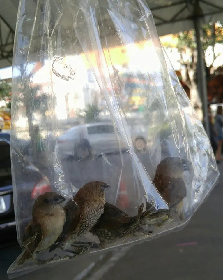 เพจ Friends Not Food - thailand ได้แชร์ภาพถ่ายนกที่ถูกขังอยู่ในถุงพลาสติก เพื่อรอการขายให้คนเอาไปปล่อย เป็นภาพความเห็นแก่ตัวของแม่ค้า หากินกับความศัทธาและการทรมารสัตว์ โดยเอาเอาความเชื่อบังหน้าเพื่อหากิน โดยโพสท์ระบุว่า
