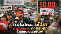 ทนไม่ไหวแล้วโว๊ย! ม็อบหน้ากระทรวงพลังงาน ชี้น้ำมันแพง ค่าแรงต่ำ กระทบค่าครองชีพ