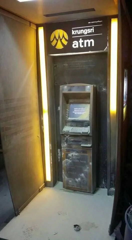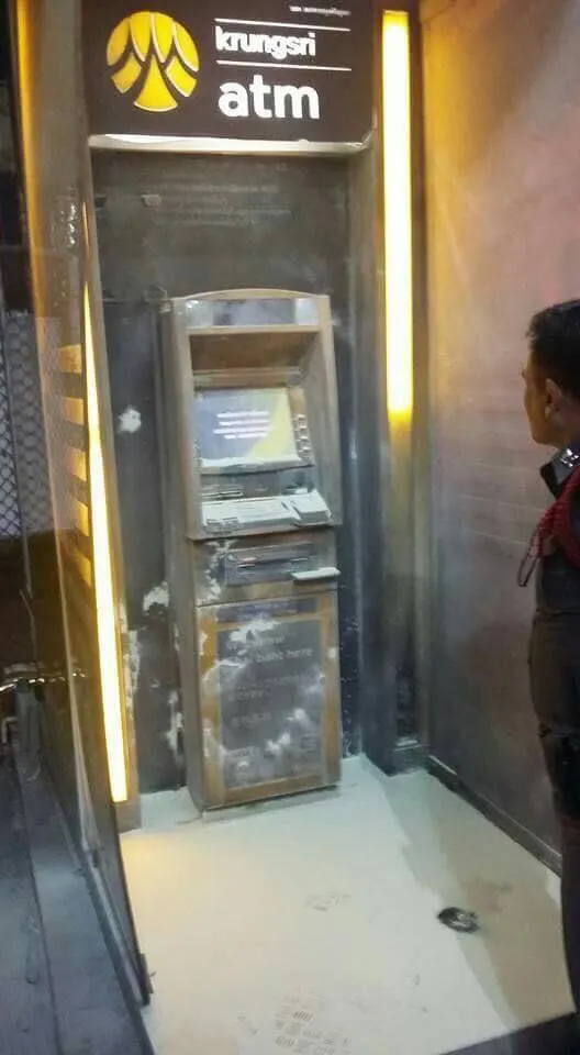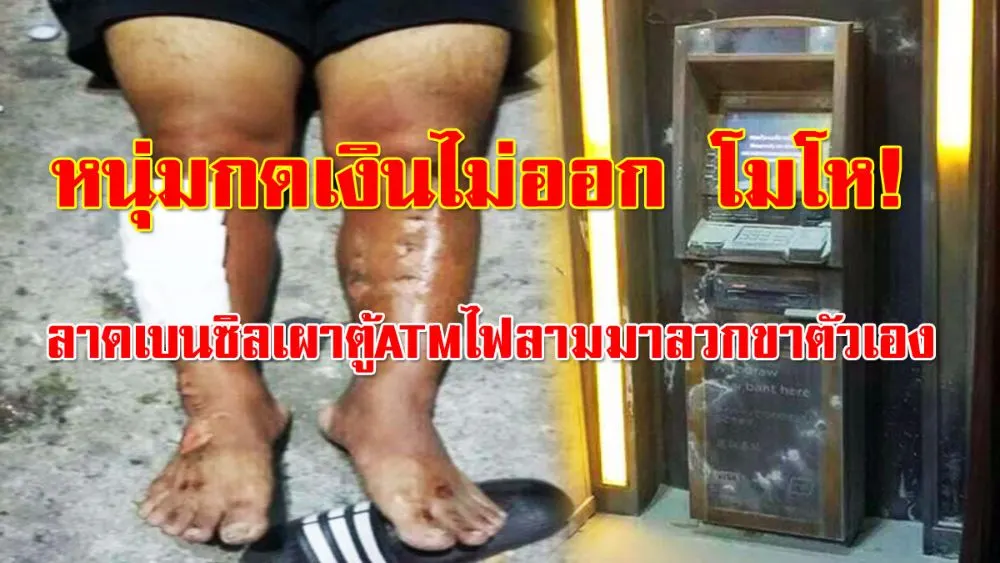 หนุ่มไปกดเงินที่ตู้ATM เงินไม่ออก โมโหใช้น้ำมันเบนซิลเผาตู้ ลามมาโดนตัวเอง บาดเจ็บ