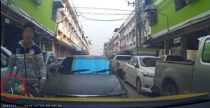 ชาวเน็ตแชร์สนั่นอีกครั้ง กับคลิปนี้ เมื่อพี่แท๊กซี่ กำลังออกจากซอย แต่จู่ๆมีรถอีกคันสวนเข้ามา ที่จริงรถคันที่สวนมานั้น ต้องหยุดให้พี่แท็กซี่ออกก่อน เพราะแท๊กซี่ขับออกไปจนจะสุดทางอยู่แล้ว สักพักผู้ชายในรถคันนั้นได้ลงมา พร้อมอาวุธ เป็นท่อเหล็ก เดินดิ่งมาเลย คนที่เห็นเหตุการณ์ต่างระทึกไปตามๆกัน ชมคลิป
