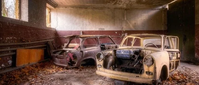 ซากรถสองคันที่ถูกทิ้งไว้ใน
