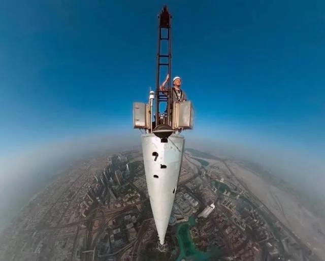 เจอรัลด์ โดโนแวน (Gerald Donovan) ช่างภาพชาวอังกฤษถ่ายภาพตนเองด้วยกล้องพาโนรามาบนตึกเบิร์จ คาลิฟา(Burj Khalifa) ตึกที่ได้ชื่อว่าสูงที่สุดในโลก โดยฉากหลังเป็นเมืองดูไบในมุม 360 องศา เห็นภาพแล้วอดรู้สึกหวาดเสียวไม่ได้เช่นกัน