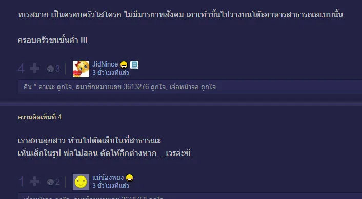หนุ่มรายนี้ไปทานร้านอาหารที่ห้างแห่งหนึ่ง ได้นั่งใกล้กับครอบครัวหนึ่ง แต่บังเอิญได้ยินเสียงตัดเล็บในร้านอาหาร จึงถ่ายภาพแล้วลงกระทู้พันทิปถามประมาณว่าเหมาะสมหรือไม่ โดยระบุว่า...