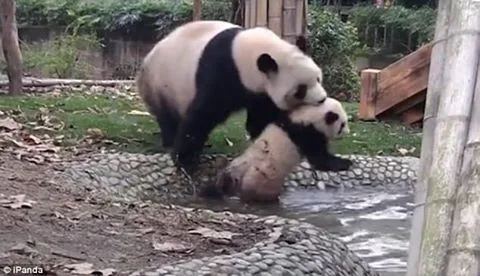 ipanda เผยภาพความน่ารักของแม่ลูกแพนด้าภายในศูนย์เพาะพันธุ์แพนด้ายักษ์ในประเทศจีน ในภาพนั้นเผยให้เห็นว่าแม่แพนด้าพยายามที่จะคาบลูกของมันไปอาบน้ำในบ่อเล็กๆ แต่เมื่อคาบไปถึงบ่อลูกแพนด้าก็พยายามจะปีนขึ้นมาจากบ่อเพื่อหนีการอาบน้ำ