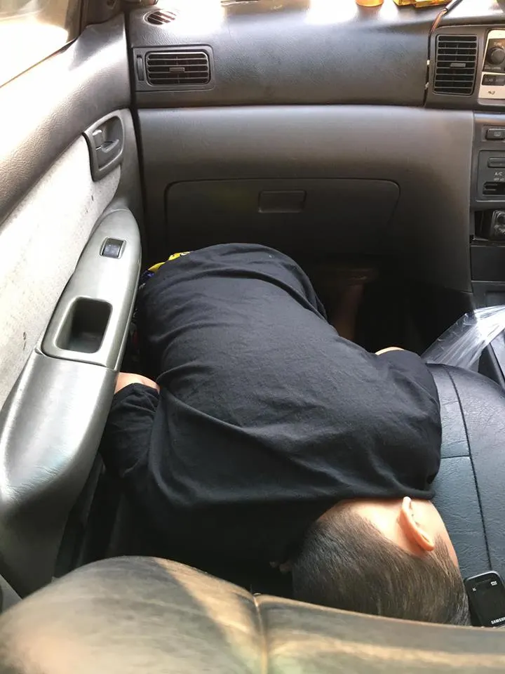 ผมนั่งอยู่เบาะหลัง มีอยู่ช่วงแกบอกว่า ส่งผมเสร็จจะบึ่งกลับราชบุรีพร้อมลูกชายเลย เนี่ยมันนอนไม่สบายอยู่เบาะหน้าเนี่ย!