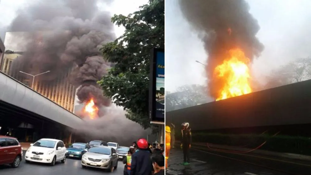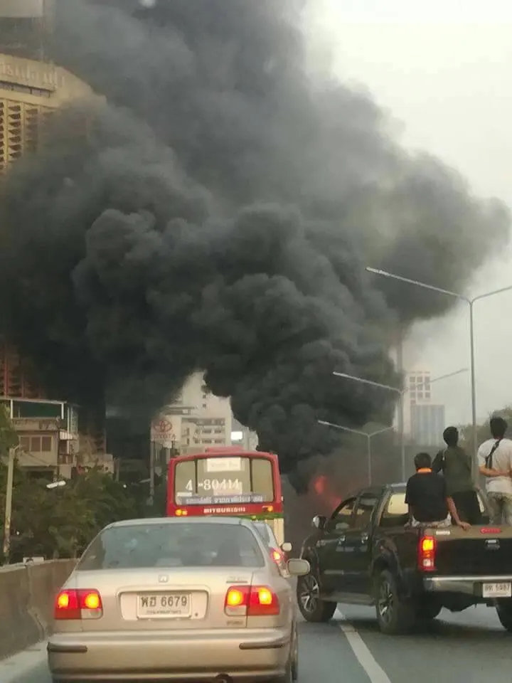ไฟไหม้ที่เก็บถังขยะ ถ.พระราม4 รถติดขัดอย่างหนัก