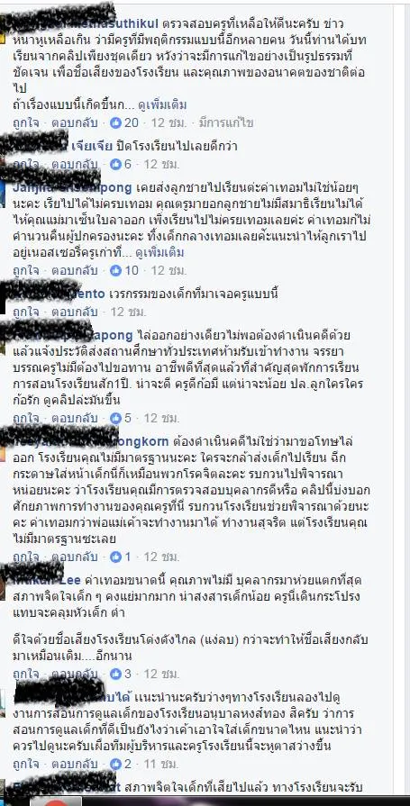 จากประเด็น เพจเฟซบุ๊ก DR.K v.3 ได้เผยแพร่คลิปครูทำร้าย นร.เด็ก จนเป็นวิพากษ์วิจาร์ณกันอย่างกว้างขวางถึงความไม่เหมาะสมของครู ล่าสุด 27/2/2560 ทางโรงเรียน ก็ออกมาโพสต์เฟซบุ้ค ไล่ครูคนดัวกล่าวออกแล้ว พร้อมจะเข้มงวดกวดขันมากขึ้นด้วย ตามข้อความข้างล่าง