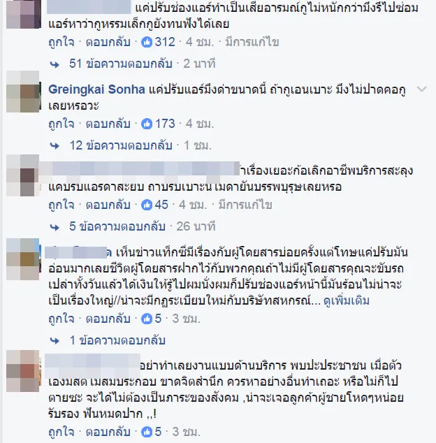 @Tarn_[ระบุว่า]... เหตุการณ์เกิดจากเลื่อนช่องแอร์ตรงข้างหน้าข้างคนขับแท็กซี่แล้วลุงด่าว่า"คุณมีสิทธิอะไรมาปรีบแอร์ผมรถผมไม่ใช่รถคุณนะเรียนอยู่ที่ไหนโรงเรียนไม่ได้สอนเรื่องมารยาทหรอไม่พอใจก็ลงไปไม่พอใจก็อยู่"แถมยังมีคำว่า"...ไม่มีการศึกษาและเลว"แบบนี้เกินไปรึป่าวคะ