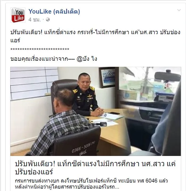 ปรับพันเดียว! แท็กซี่ด่าแรง ...-ไม่มีการศึกษา แค่'นศ.สาว ปรับช่องแอร์