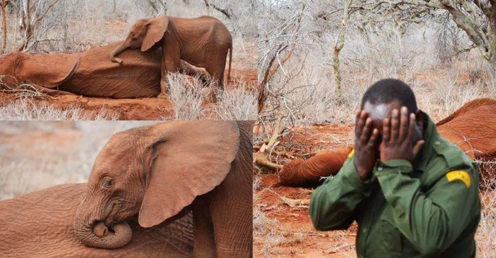 เหตุการณ์แสนเศร้านี้เกิดขึ้นในประเทศเคนยา เมื่อเจ้าหน้าที่ศูนย์ช่วยเหลือสัตว์ในประเทศเคนยา ได้เข้าช่วยเหลือแม่ช้างที่ถูกยิงและตัดเอางา เจ้าหน้าที่พยายามช่วยเหลือแม่ช้าง แต่บาดแผลขนาดใหญ่ทำให้แม่ช้างอ่อนแรงลงเรื่อยๆ จนมันนอนนิ่งและหมดลมหายใจ โดยที่มีลูกช้างยืนเฝ้าคลอเคลีย เคียงข้างแม่ของมันด้วยความเป็นห่วงอยู่ตลอดเวลา