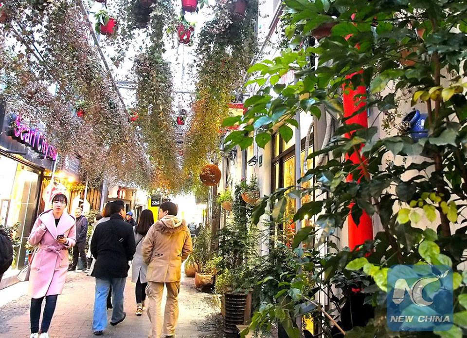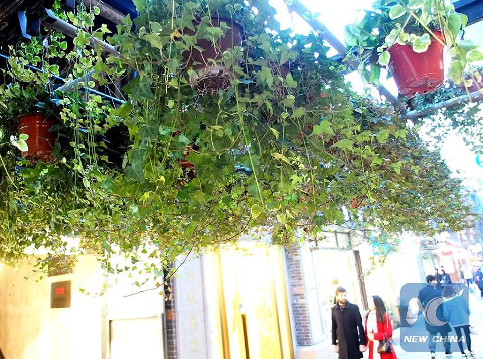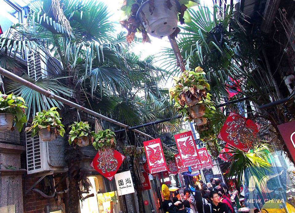 มีการปลูกพืชตลอดเส้นทางเพื่อสร้าง “ทางเดินสีเขียว” ในซอยแห่งหนึ่งของย่านเทียนจื่อฟาง (田子坊) นครเซี่ยงไฮ้ ทางตะวันออกของประเทศ เพื่อสร้างบรรยากาศที่ร่มรื่นให้แหล่งรวมผลงานศิลปะชื่อดังของเซี่ยงไฮ้แห่งนี้นั่นเอง