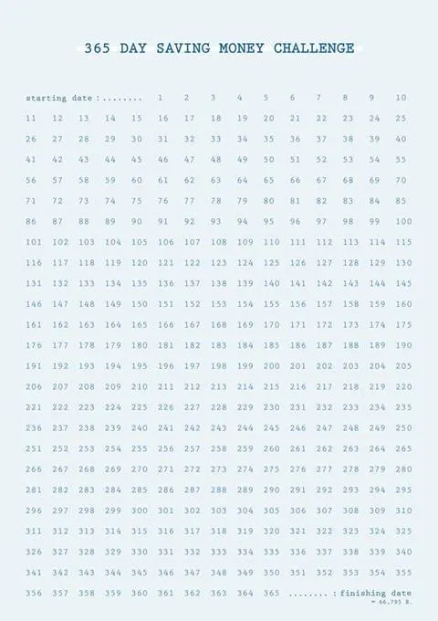 ทั้งนี้ ผู้ออมจะต้องพรินท์ปฏิทินเก็บเงินตามตัวอย่างนี้ แล้วเริ่มทยอยเก็บเงินนับตั้งแต่วันแรกเช่น ในวันที่ 1 ของปี ก็เก็บเงิน 1 บาท วันที่ 2 ของปี ก็เก็บเงิน 2 บาท โดยค่อย ๆ ทยอยเพิ่มเงินเก็บไปเรื่อย ๆ ทบจากของเดิมวันละ 1 บาท แล้วภายใน 365 วัน คุณก็จะมีเงินเก็บทั้งสิ้นกว่า 66,795 บาทเลยทีเดียว