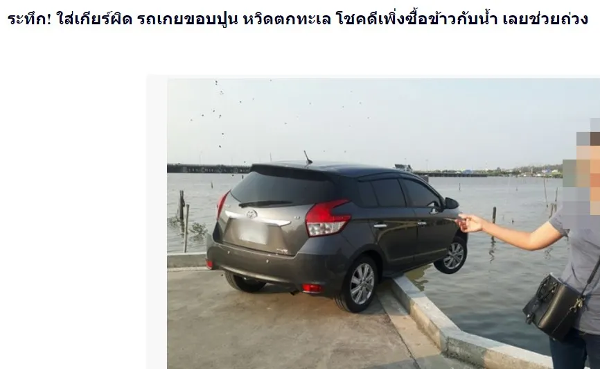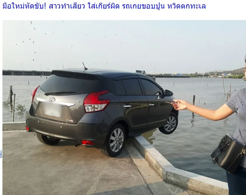 จากข่าวที่นำเสนอ ในสื่อต่างๆ ว่า สาวเลี้ยวกลับรถ แต่ใส่เกียร์ผิด รถพุ่งยื่นออกไปนอกสะพาน หวิดตกทะเลชลบุรี โชคดีที่รถค้างเติ่งรับน้ำหนักไว้ได้ โร่แจ้งกู้ภัยให้มาช่วยเหลือ