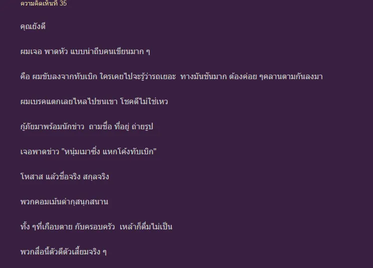 หลังจากนั้นได้มีการนำเรื่องของเรา ไปลงข่าว และลงว่าเราเป็นคนขับ ตามนี้