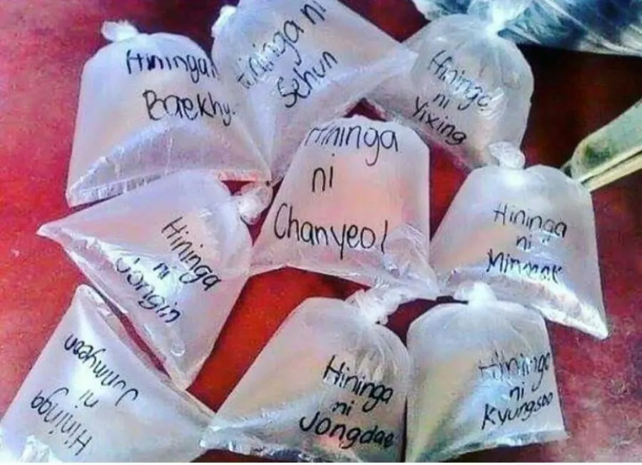 งานนี้ไม่รู้ว่าเป็นเรื่องจริง หรือว่าแค่เอาฮากันแน่นะคะเนี่ย เมื่อมีผู้ใช้ทวิตเตอร์ชื่อว่า @minyoung_line ได้เผยภาพถุงอัดลมจำนวนหนึ่ง โดยแต่ละถุงนั้นเขียนเป็นภาษาฟิลิปปินส์ และมีชื่อศิลปินเกาหลีชื่อดัง สมาชิกจากวง EXO กำกับไว้ ซึ่งมีความหมายว่าเป็นถุงที่อัดลมหายใจของศิลปินเกาหลีวง EXO แต่ละคนเอาไว้ และได้วางจำหน่ายให้แฟนคลับได้ซื้อกันไป งานนี้ก็ไม่รู้ว่าเป็นเรื่องจริง หรือแฟนคลับชาวฟิลิปปินส์ทำเอาฮาเท่านั้นนะคะเนี่ย แต่ที่แน่ ๆ ถ้ามีวางจำหน่ายจริง ๆ อยากจะรู้จังว่าไปเอาลมหายใจของศิลปินเกาหลีชื่อดังมาได้ยังไงนะเนี่ยยย!?