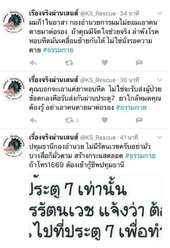 เมื่อคืนวันที่ 1 มีนาคม 60 มีผู้ใช้ทวิต @K5_Rescue ซึ่งเป็น 1 ในอาสาสมัคร กองอำนวยการคลองหลวง ทวิตชี้เเจงหลังถูกพระสนิทวงศ์ วุฒิวโสและกลุ่มศิษย์ธรรมกายออกมากโจมตี กรณ์ที่อาสาหน่วยกู้ชีพรัตนเวชเข้าไปช่วยเหลือธรรมกายที่เป็นเป็นโรคหอบล่าช้า เนื่องจากติดด่านตำรวจทหารทำให้ผู้ป่วยต้องเสียชีวิตนั้น