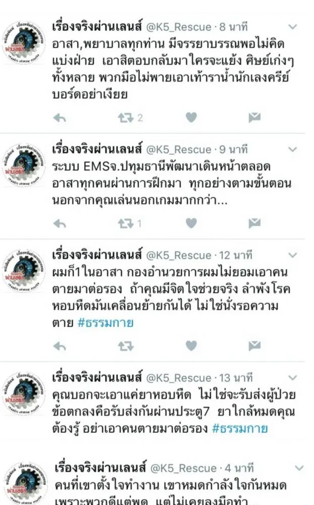 1 ชั่วโมง 15 นาที พวกคุณทำไรกันอยู่ครับ นั่งรอคนตายเหรอ อาสาพยาบาลก็มีไม่ใช่เหรอ นั่งรอไรกันครับ ขอร้องอย่าเอาคนตายมาเป็นประเด็น คนที่เขาตั้งใจทำงาน เขาหมดกำลังใจกันหมด เพราะพวกดีแต่พูด แต่ไม่เคยลงมือทำ…เอาความจริงมาคุยกัน