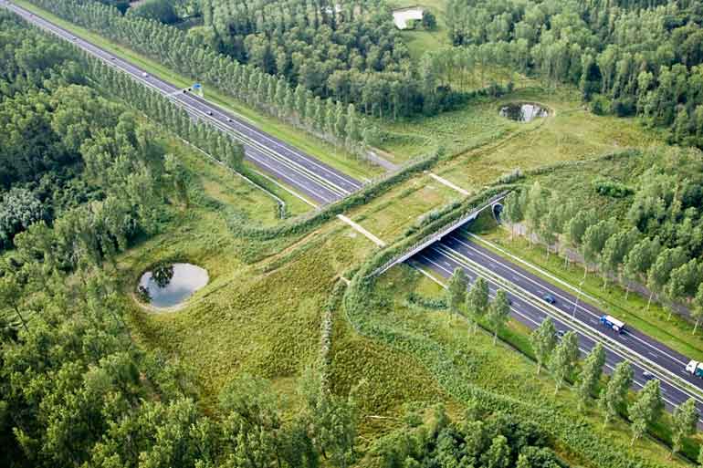 สะพานเพื่อชีวิต สำหรับให้สัตว์ป่าข้ามถนนนั้นมีขึ้นเป็นที่แรกในประเทศฝรั่งเศส ในช่วงปี 1950 และจัดว่ายุโรปคือผู้นำในด้านแนวคิดนี้โดยเฉพาะประเทศเนเธอร์แลนด์ที่มีสะพานสัตว์ข้ามมากถึง 66 แห่ง ช่วยให้สัตว์น้อยใหญ่ปลอดภัยในการข้ามถนนตั้งแต่ แบดเจอร์ หมูป่า ไปจนถึงกวางตัวใหญ่ๆ เลยครับ