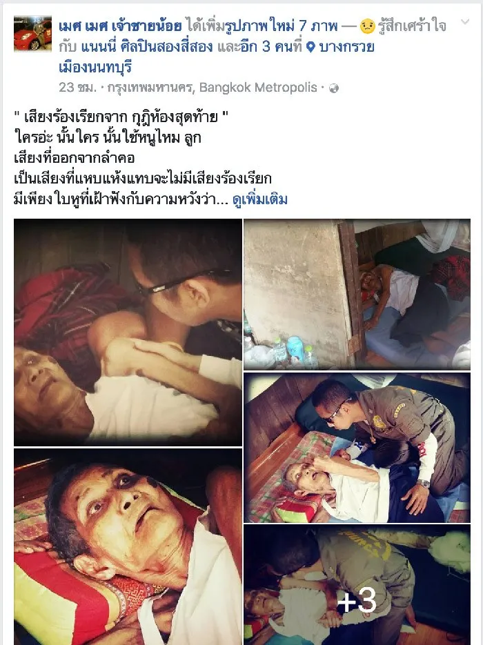 เสียงที่ออกจากลำคอ เป็นเสียงที่แหบแห้งแทบจะไม่มีเสียงร้องเรียก มีเพียงใบหูที่เฝ้าฟังกับความหวังว่าคนที่เดินผ่านห้องจะเป็นลูกชายที่เฝ้าคอยมาหลายปี