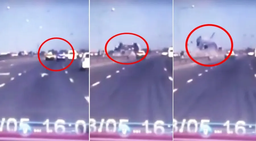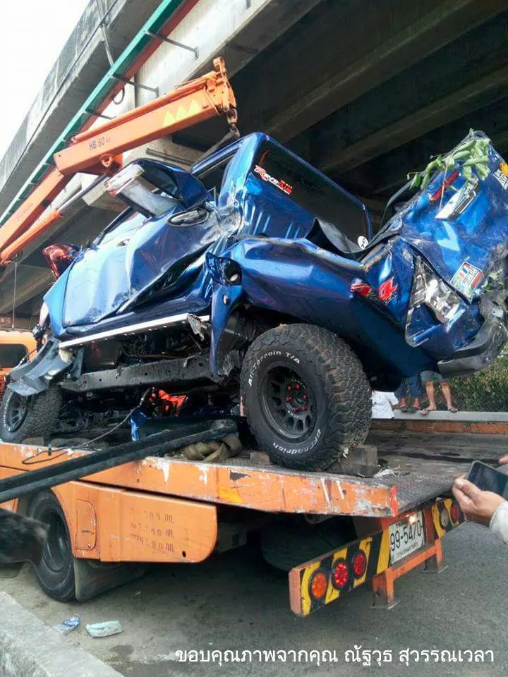 ระทึก!! คนบนทางด่วนเห็นคาตา ปิ๊กอัพป้ายแดงเบียดกับแท๊กซี่ เสียหลักตกลงมาพังยับไม่เหลือสภาพ (มีคลิป)