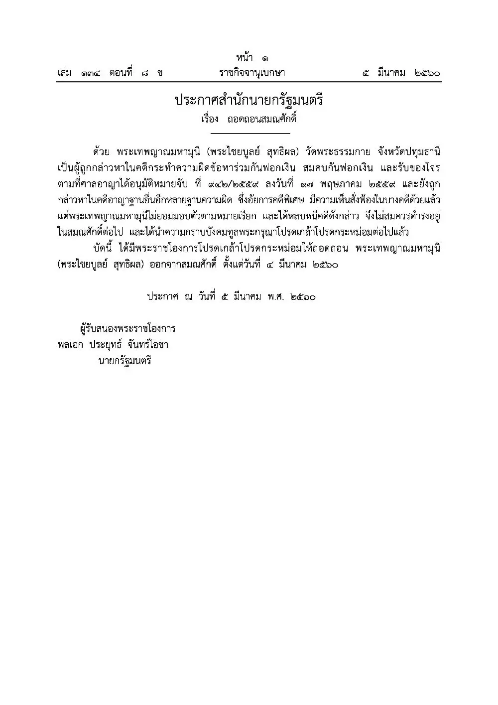 ด่วน !!! ประกาศ ถอดสมณศักดิ์ พระเทพญาณมหามุนี ( พระธัมมชโย ) แล้ว
