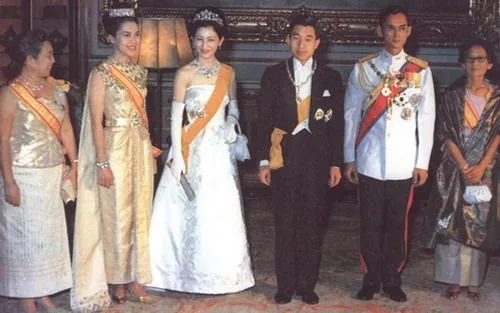 สมเด็จพระจักรพรรดิอะกิฮิโตะ และสมเด็จพระจักรพรรดินีมิชิโกะ ครั้งเสด็จพระราชดำเนินเยือนประเทศไทย ทรงฉายพระรูปร่วมกับ พระบาทสมเด็จพระปรมินทรมหาภูมิพลอดุลยเดช สมเด็จพระนางเจ้าสิริกิติ์ พระบรมราชินีนาถ สมเด็จพระศรีนครินทราบรมราชชนนี และสมเด็จพระนางเจ้ารำไพพรรณี (ประทับยืนอยู่ทางซ้ายสุดของรูป)