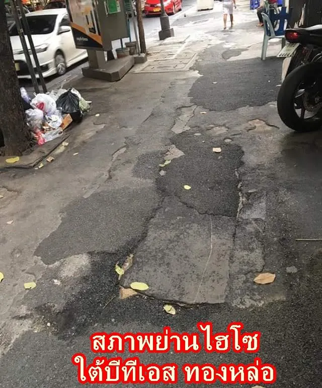 ฟุตปาธย่านกลางเมือง ย่านไฮโซ ย่านเศรษฐกิจ ยังมีสภาพเน่าๆแบบนี้