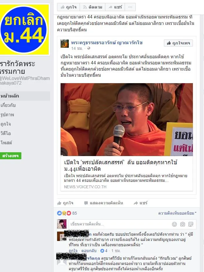 พระปลัดเสกสรรค์ แกนนำกลุ่มธรรมกายที่ตลาดกลางคลองหลวง ประกาศลั่นพระในนี้เป็นพระจริงๆ หากเป็นพระปลอมคงจะมาสวดธรรมจักรและทำวัดเช้าวัดเย็นไม่ได้ ในขณะที่เจ้าของรถสุขาที่มาจอดช่วยที่ตลาดเจ้าของต้องการจะนำกลับไป แต่สาวก "ธรรมกาย" กลับไม่ยินยอม จนต้องไปแจ้งความไว้ที่โรงพัก ส่วนด้านพระปลัดเสกสรรค์ ยืนยันว่าจะไปพบเจ้าหน้าที่ตามหมายเรียก วัแม้ยังไม่รู้ว่าโดนดำเนินคดีข้อหาอะไร หากไปพบเจ้าหน้าที่แล้วไม่ได้กลับ ก็พร้อมที่จะติดคุก แต่การที่พระจะติดคุกต้องให้ลาสิกขาก่อน ตนจึงขอประกาศเจตนารมณ์ ว่ายอมติดคุกแต่จะไม่ยอมสึก โดยกล่าวต่อว่า ประเด็นที่พระธัมมชโย ถูกถอดสมณศักดิ์นั้น ตนและศิษย์ ทุกคน มองว่า ไม่ได้มีผลกระทบอะไร เนื่องจากเรากราบท่าน ในฐานะท่านเป็นพระธัมมชโย ไม่ใช่กราบในสมณศักดิ์