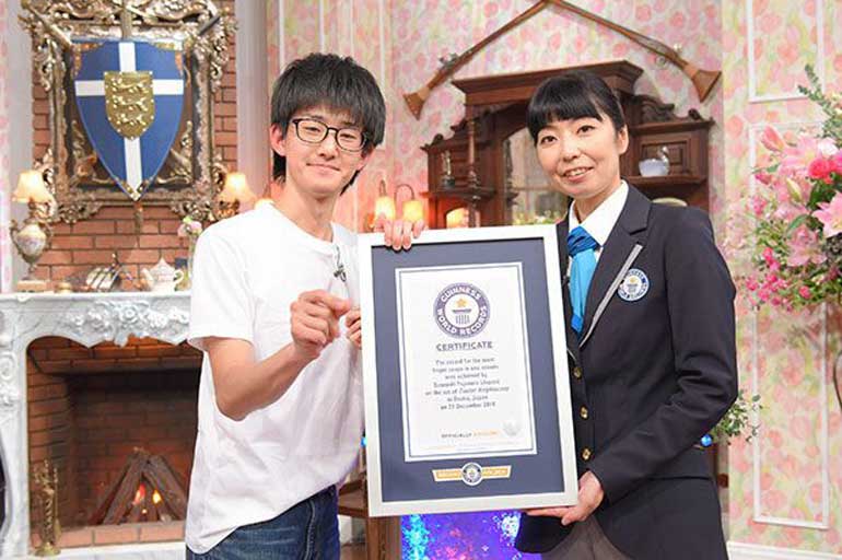 Guinness World Records ได้บันทึกสถิติโลกหนุ่มนักศึกษาชาวญี่ปุ่น ที่ดีดนิ้วให้ได้มากที่สุด 296 ครั้งในหนึ่งนาที