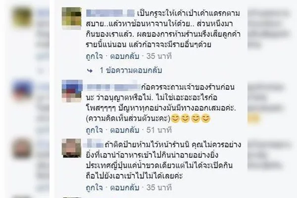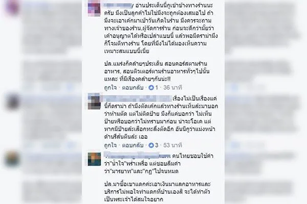 ท้ายที่สุดเมื่อเพจดังกล่าวเผยแพร่เรื่องราวที่เกิดขึ้นทำให้บรรดาชาวเน็ตต่างเข้ามาจวกการกระทำของลูกค้าท่านนี้ โดยบอกว่า นี่เป็นร้านอาหาร เขาก็อยากขายอาหารของร้านเขาให้ได้ ขณะที่บางส่วนมองว่า คนไทยชอบใช้คำว่า "น้ำใจ" พร่ำเพรื่อ แต่ชอบลืมคำว่า "มารยาท" และ "กฎ" ไปจนหมด