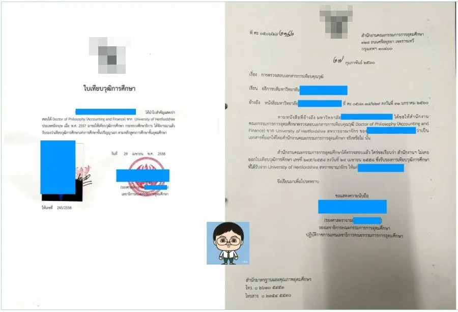 วันพุธ ที่ 8 มีนาคม 60 อ.อ๊อด และทีมงาน อยู่ DSI เวลา 10.00 น. ครับ ประชุมกับทีมสืบสวนสอบสวน สิ่งที่น่าสงสารกับวงการอุดมศึกษาไทยอย่างมากคือ อาจารย์ที่ใช้วุฒิปริญญาเอกปลอมมาเป็นอาจารย์นั้น ได้ปลอมเอกสารจาก สกอ. เพื่อรับรองวุฒิปริญญาเอกปลอมอีกรอบ ซ้ายคือใบเทียบวุฒิ ที่ อาจารย์ท่านนี้ใช้ในการปรับวุฒิในมหาวิทยาลัย ส่วน ขวา คือเอกสารจาก สกอ. ปฏิเสธการออกใบเทียบวุฒิให้ #ปริญญาเอกปลอม