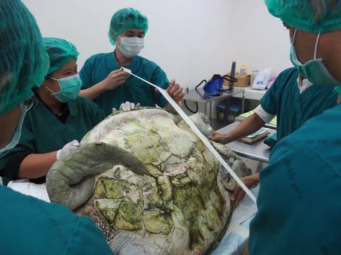 ทีมสัตวแพทย์ที่ทำการรักษาและผ่าตัด “เต่าออมสิน”