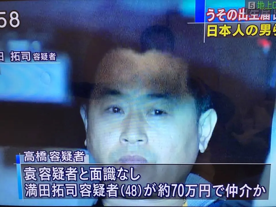 สำนักงานตำรวจญี่ปุ่นเปิดเผยว่า ได้จับกุมตัวผู้ต้องสงสัยชาวญี่ปุ่นสองคน คือนายทาคาฮาชิ ชินจิ อายุ 54 ปี และนายมิตสึดะ ทะคุจิ อายุ 48 ปี และนาง Yuán shuǎng ชาวจีนอายุ 27 ปีในข้อหาร่วมกันแจ้งเกิดบุตรอันเป็นเท็จ เพื่อให้ลูกของชาวจีนได้สัญชาติญี่ปุ่น 〜