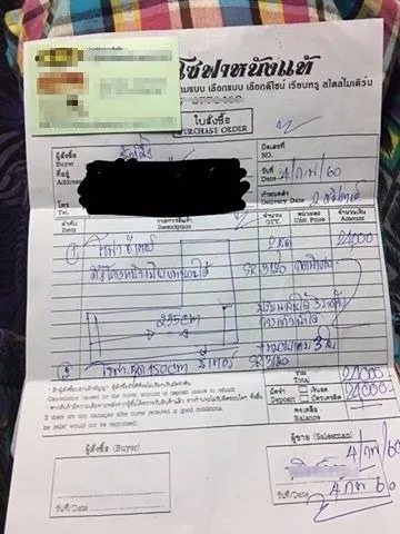 กลับมาบ้านก็เอะใจ เปิดดูใบสั่งซื้อ เห็นว่า มันถูกเขียนบนกระดาษ A4 เหมือนจะไม่มีสำเนาอะไรไว้เลย จึงไม่แน่ใจ ว่า ที่ซื้อไป คนขายจะรู้ได้ไง ว่าเราสั่งเสปคแบบไหน เลยโทรไปถาม นางบอกนางมีรายละเอียดการสั่งซื้อของเรา บอกเสปคการสั่งกลับมาได้หมด เราก็ไม่ไร เหมือนจะสบายใจมากขึ้น แต่ก็ไม่สบายใจอยู่ดี