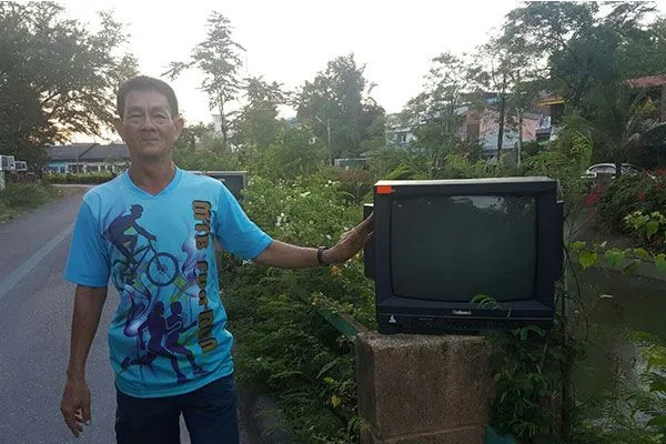 ที่อ.หาดใหญ่ จ.สงขลา ผู้ที่ขับรถผ่านไปมาในซอย9 ถนนศุภสารรังสรรค์ เขตเทศบาลนครหาดใหญ่ ซึ่งเป็นถนนเลียบคลองเตย ต้องแปลกใจกับโทรทัศน์และคอมพิวเตอร์เก่านับร้อยเครื่องที่ถูกนำมาทำเป็นกระถางปลูกพืชผักสวนครัวและไม้ดอกไม้ประทับ ทำเป็นศาลพระภูมิ และตั้งเรียงไว้บนเสาราวสะพานริมคลองตลอดแนวคลอง