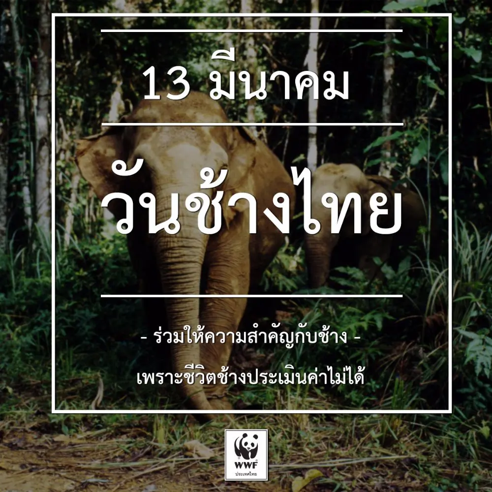 ไทย เพื่อให้คนไทยได้ตระหนักถึงความสำคัญ และการดำรงอยู่ของช้างไทย คณะรัฐมนตรีได้มีมติเห็นชอบที่ ให้วันที่ 13 มีนาคม ของทุกปี เป็นวันช้างไทย