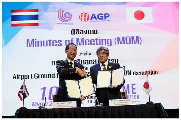 นายพสุ โลหารชุน อธิบดีกรมส่งเสริมอุตสาหกรรม พร้อมด้วย มร.เออิชิ ยามากุชิ (Mr. Eiichi YAMAGUCHI) ประธานบริหารกลุ่มบริษัท AGP CORPORATION ประเทศญี่ปุ่น ร่วมกันลงนาม Minutes of Meeting (MOM) ในงาน SME REVOLUTION : เส้นทางสายโอกาสเอสเอ็มอี 4.0 ถือเป็นความสำเร็จอีกก้าวหนึ่งของการส่งเสริม SME ไทยเปลี่ยนสู่อุตสาหกรรมขนส่งและการบิน โดยกิจกรรมนี้เป็นส่วนหนึ่งของกิจกรรมสร้างต้นแบบการพัฒนาอุตสาหกรรมขนส่งและการบินภายใต้โครงการพัฒนาสถานประกอบการอุตสาหกรรมด้านชิ้นส่วนอากาศยานในปีงบประมาณ 2560 เพื่อให้เกิดความร่วมมือในการส่งเสริม SME ไทยเข้าสู่อุตสาหกรรมอากาศยาน ก่อให้เกิดการลงทุนและสร้างต้นแบบผู้ประกอบการที่ประสบความสำเร็จ และพลิกโฉมประเทศไทยสู่ยุคอุตสาหกรรม 4.0 ณ ศูนย์การประชุมแห่งชาติสิริกิติ์