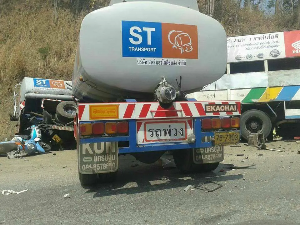 พ่วงน้ำมันชนรถขนจักรยานยนต์ ตาย 4 เจ็บสาหัส 1 ราย
