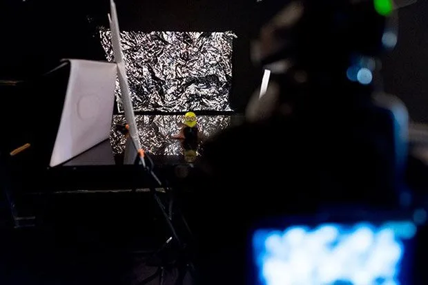 ขณะที่ลูกชายวัย 4 ขวบของฉันกำลังนอนหลับอยู่ ฉันก็หยิบตัวมินเนี่ยนของลูกมาเป็นแบบ ฉันใช้เจลสีแดงเป็นฉากหลังและใช้กระดาษปอนด์เพื่อสะท้อนแสงไฟจากแสงหลัก