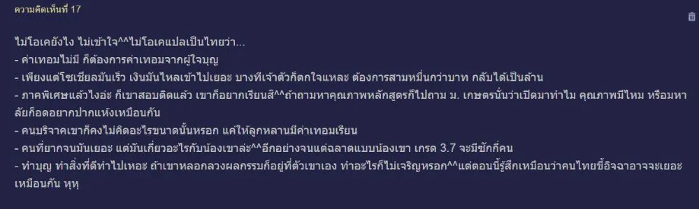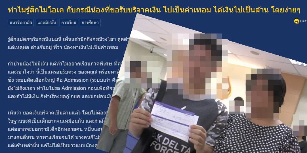 ชาวพันทิปตั้งกระทู้ว่า ...ทำไมรู้สึกไม่โอเค!! กับกรณีน้องที่ขอรับบริจาคเงิน ไปเป็นค่าเทอม ได้เงินไปเป็นล้าน โดยง่ายๆ