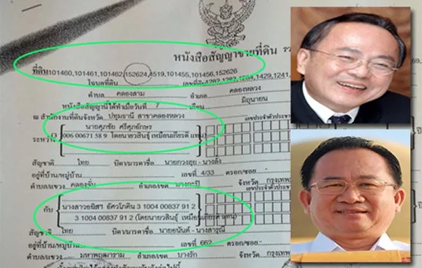 หลักฐานมัด ศุภชัย ศุภศรีอักษร (ล่าง) ชิงขายที่ดิน 57 ไร่ ข้างวัดพระธรรมกาย ให้ลูกสาว อนันต์ อัศวโภคิน (ภาพบน) 298 ล้านภายหลังพบคดียักยอกสหกรณ์เครดิตยูเนี่ยนคลองจั่น