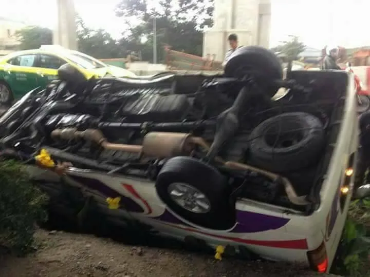 วันที่ 17มีนาคม (วันนี้) เมื่อเวลาประมาณ 11.30 น. ข่าวอุบัติเหตุ Chon Buri รายงานว่า รถตู้โตโยต้าโดยสาร ป้ายเหลืองทะเบียน 14-5552 กรุงเทพ วิ่งระหว่าง อิมพีเรียลสำโรง รังสิต เสียหลักพลิกคว่ำ บริเวณหน้าคลังสินค้าดอนเมือง ทำให้มีผู้บาดเจ็บหลายราย ไม่มีรายงานว่ามีผู้เสียชีวิตแต่อย่างใด โดยเบื้องต้นเจ้าหน้าได้นำตัวส่งร.พ.ใกล้เคียงแล้ว