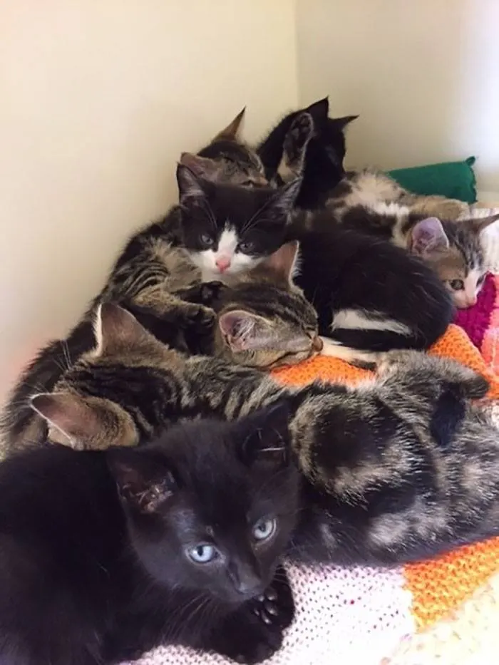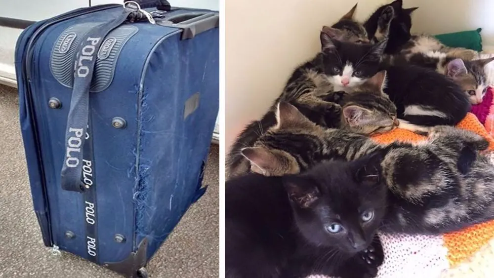 ผู้หญิงคนหนึ่งในประเทศอังกฤษได้ออกไปเดินเล่นพร้อมสุนัขของเธอ เธอได้พบกับกระเป๋าใบใหญ่สภาพเก่าวางอยู่ใกล้ทางรถไฟ แต่สุนัขของเธอเริ่มดมกลิ่นและเข้าไปใกล้ จากนั้นเธอเริ่มได้ยินเสียงออกมาจากกระเป๋า เมื่อลองเปิดกระเป๋าพบลูกแมวกว่า 8 ตัว ในสภาพหิว ร่างกายผอมแห้ง โดยเฉพาะแม่แมว เธอจึงรีบแจ้งไปยังศูนย์ช่วยเหลือสัตว์ จากนั้นเจ้าหน้าที่รีบมารับตัวไปและพาแม่แมวไปพบสัตวแพทย์ ตอนนี้พวกมันได้รับการดูแลอยู่ภายในศูนย์ช่วยเหลือสัตว์